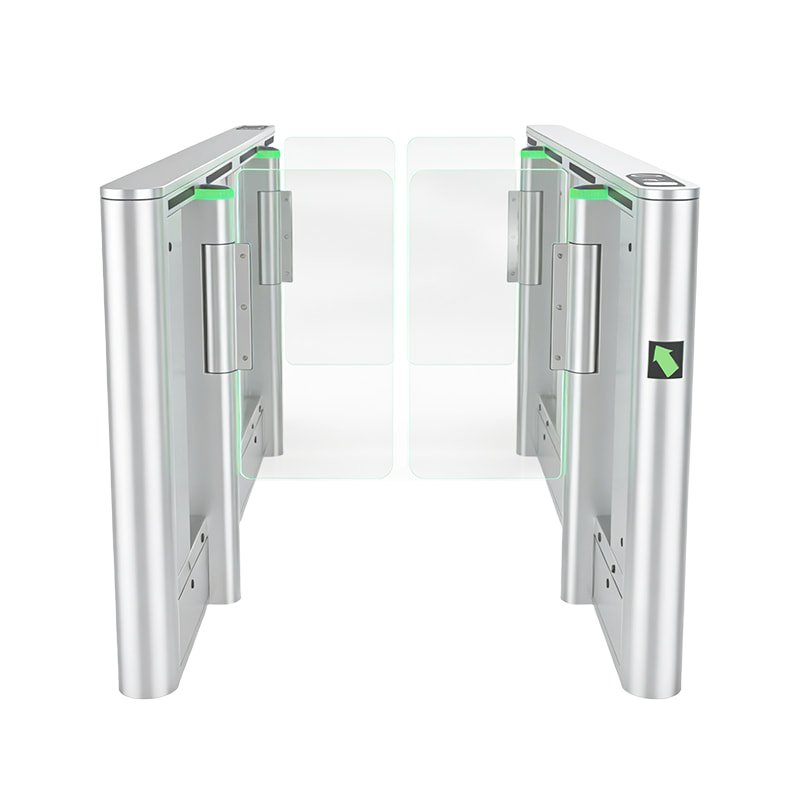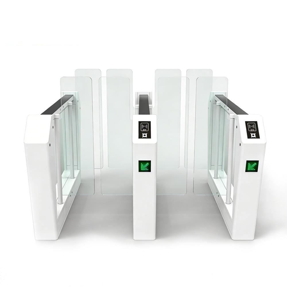 Swing barrier gate, also known as a swing gate or turnstile gate, is a type of security gate used to control pedestrian access in areas that require restricted entry or exit. It consists of a barrier with rotating arms that swing open to allow passage and swing closed to restrict access. Swing barrier gates are commonly seen in places like airports, train stations, stadiums, office buildings, and other public areas.